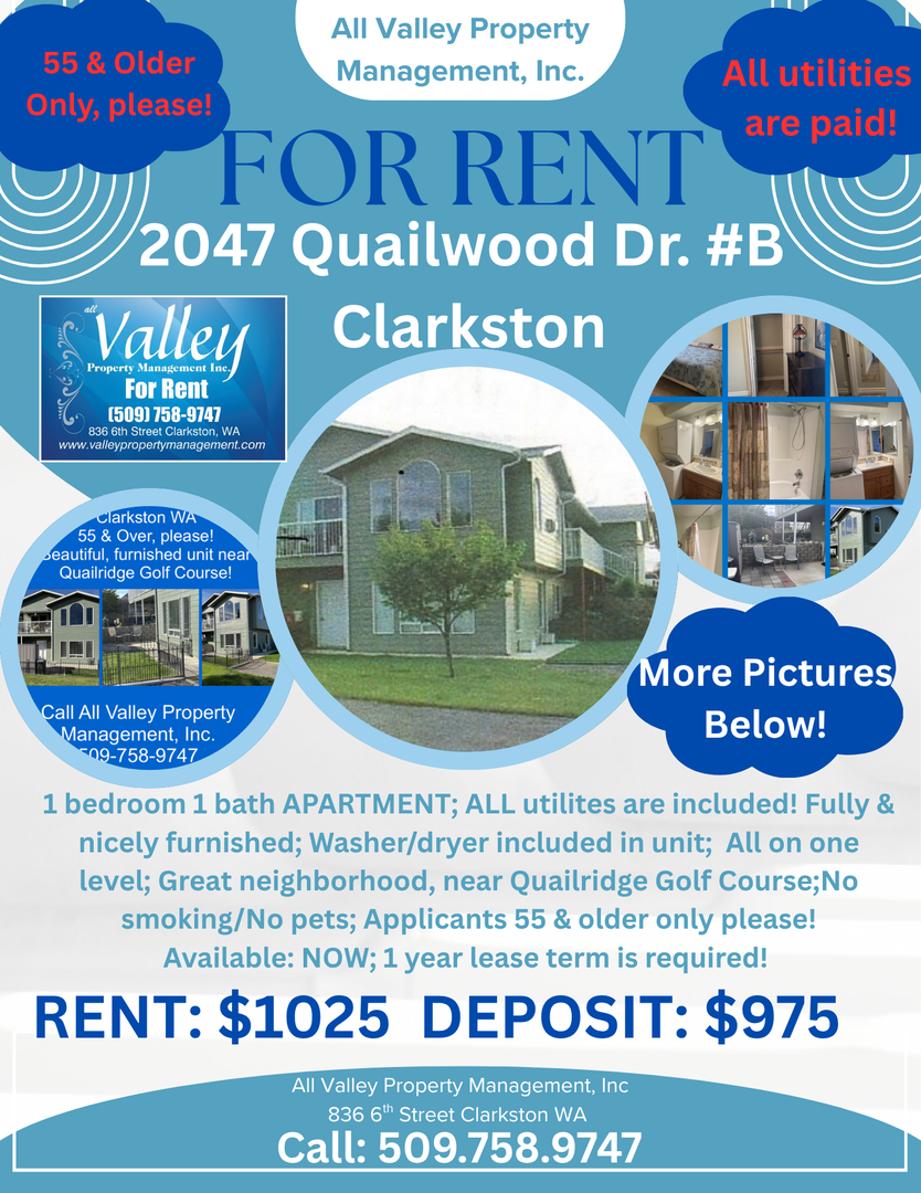 If you have a unit that you'd like to rent (furnished or unfurnished) please give us a call TODAY to find out how we can help market your property FOR RENT or LEASE! Visiting with us doesn't obligate you at all -- we're here to help!